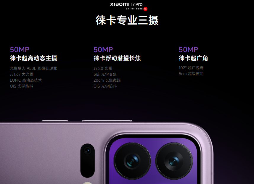 影像系统方面,小米17 Pro延续与徕卡的深度合作,后置5000万像素徕卡三摄,搭载全新光影猎人950L传感器,并支持LOFIC第三代高动态技术,能够精准捕捉光线细节,还原真实且富有质感的画面,搭配妙享背屏,可满足用户在不同场景下的拍摄需求,堪称“自拍神器”。